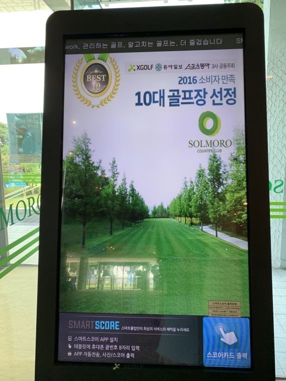 클럽하우스에 들어가서 체크인을 진행하면서 발견한 키오스크ㅋ xgolf 동아일보 스포츠동아에서 매년 선정하는 10대 골프장 행사에 매년 참여 중인가보다 우리나라에 수많은 골프장 중에서 10대에 드는 솔모로! 어느정도인지 확인 해봐야겠다